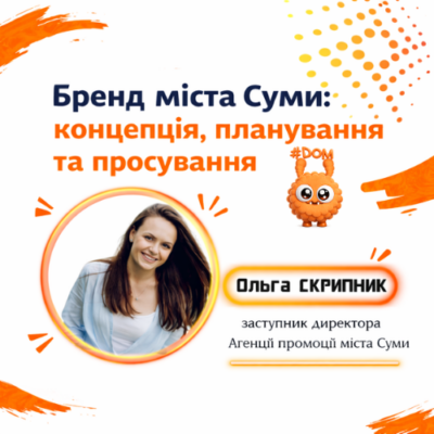 Під час заходу учасники разом зі спікеркою – заступницею директора КУ «Агенція промоції Суми» Ольгою СКРИПНИК, сформували спільне бачення щодо бренду міста Суми. Було розглянуто ключові складові айдентики міста, його цінності, унікальні риси та асоціації, які виникають у людей при згадці про Суми.