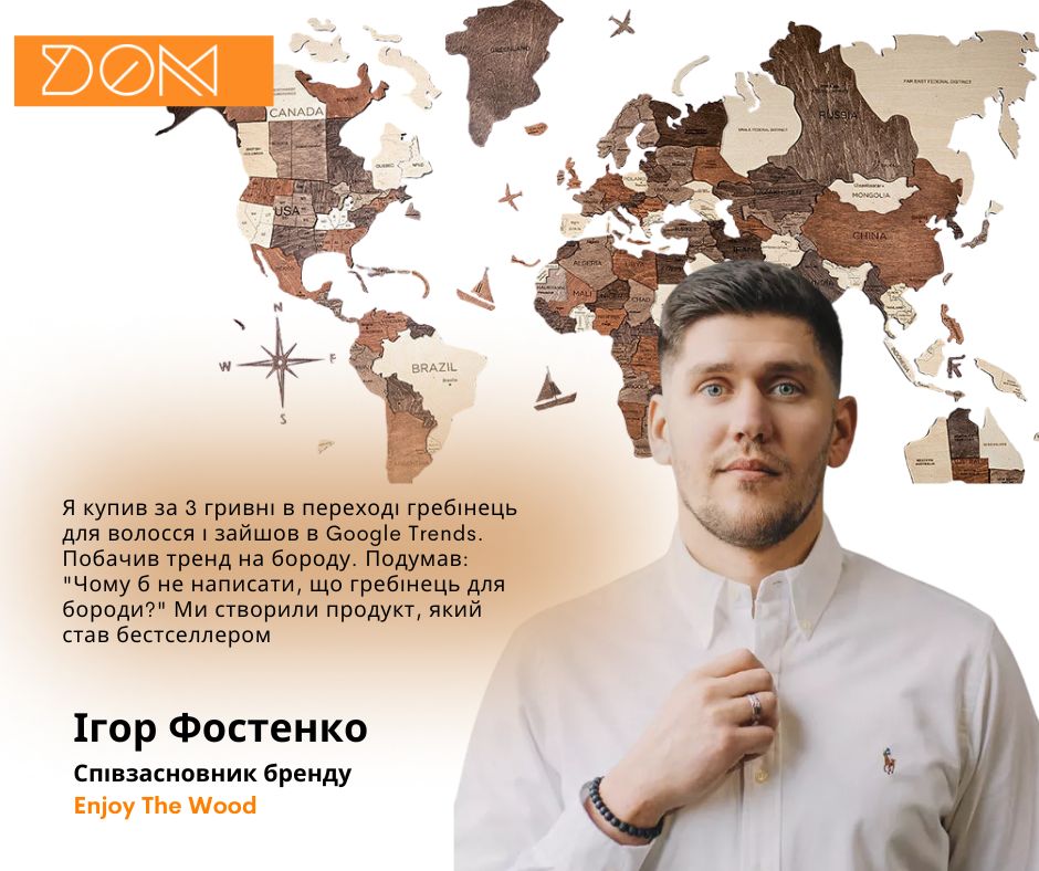 Свої ідеї Ігор підкріплював реальними прикладами — від того, як звичайний гребінець за 3 гривні став бестселером для бороданів, до історії з SEO, коли бренд Enjoy The Wood став настільки популярним, що його назву рекомендували на курсах як ключове слово для просування. Він наголосив: «У світі багато грошей. І щоб їх отримати, не варто думати як усі. Якщо робити те, що й інші, у вас не буде ніякої переваги».