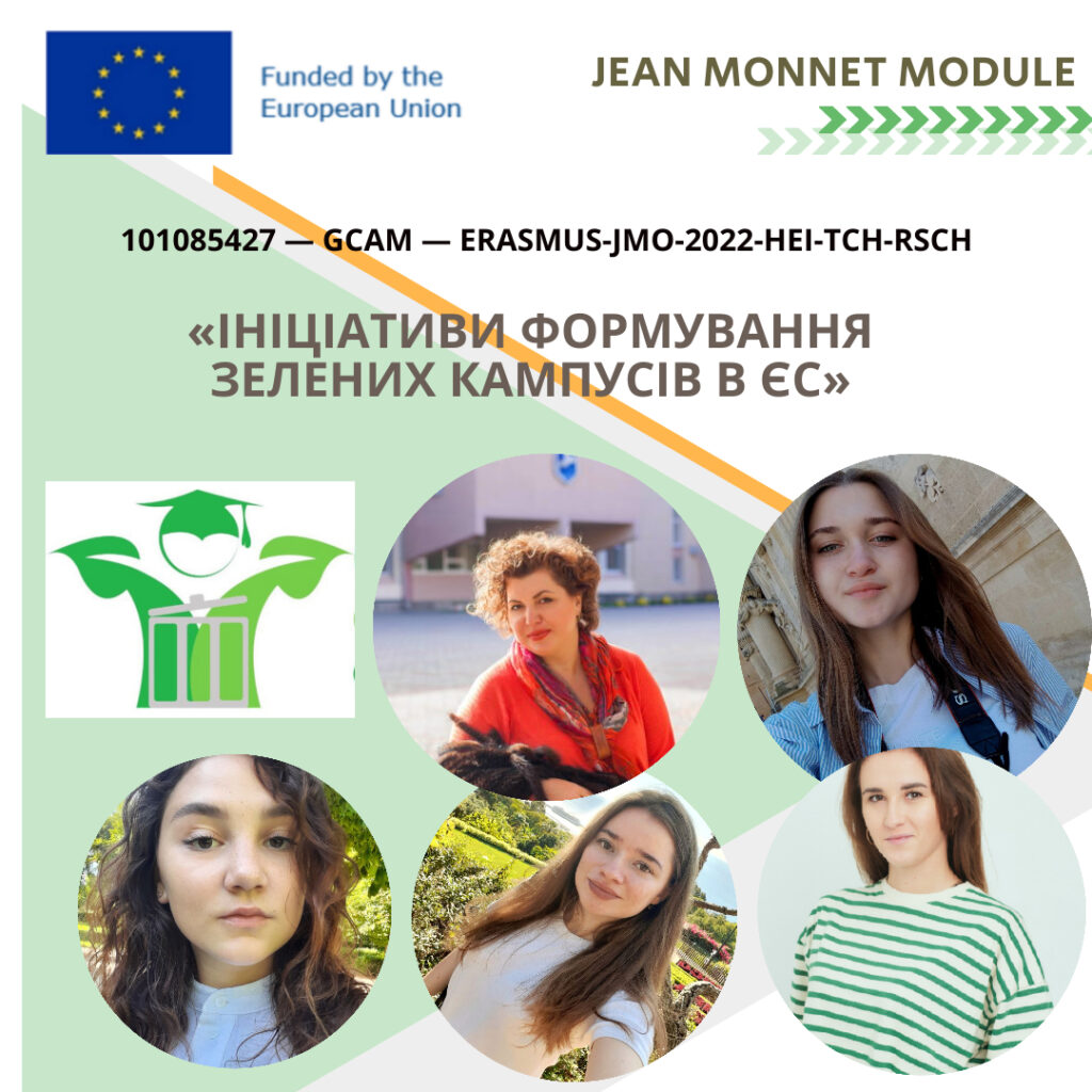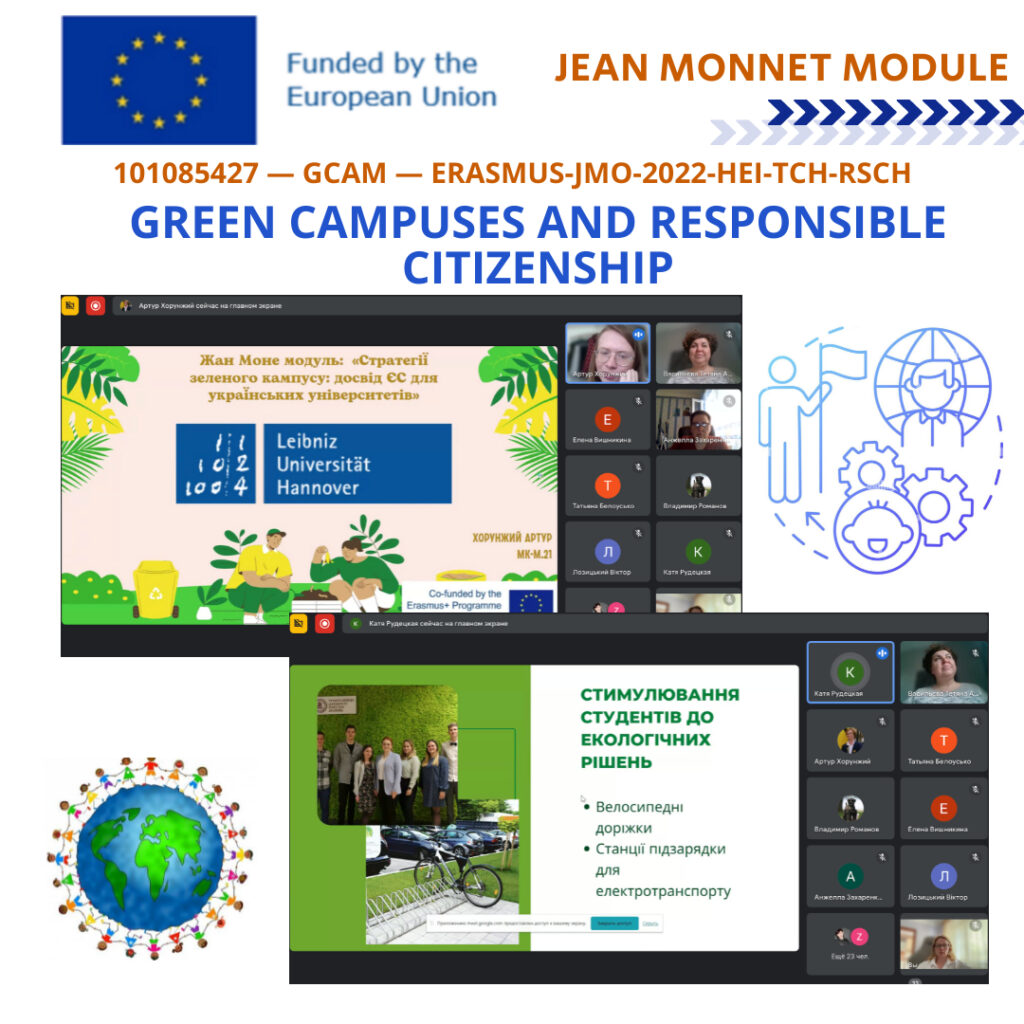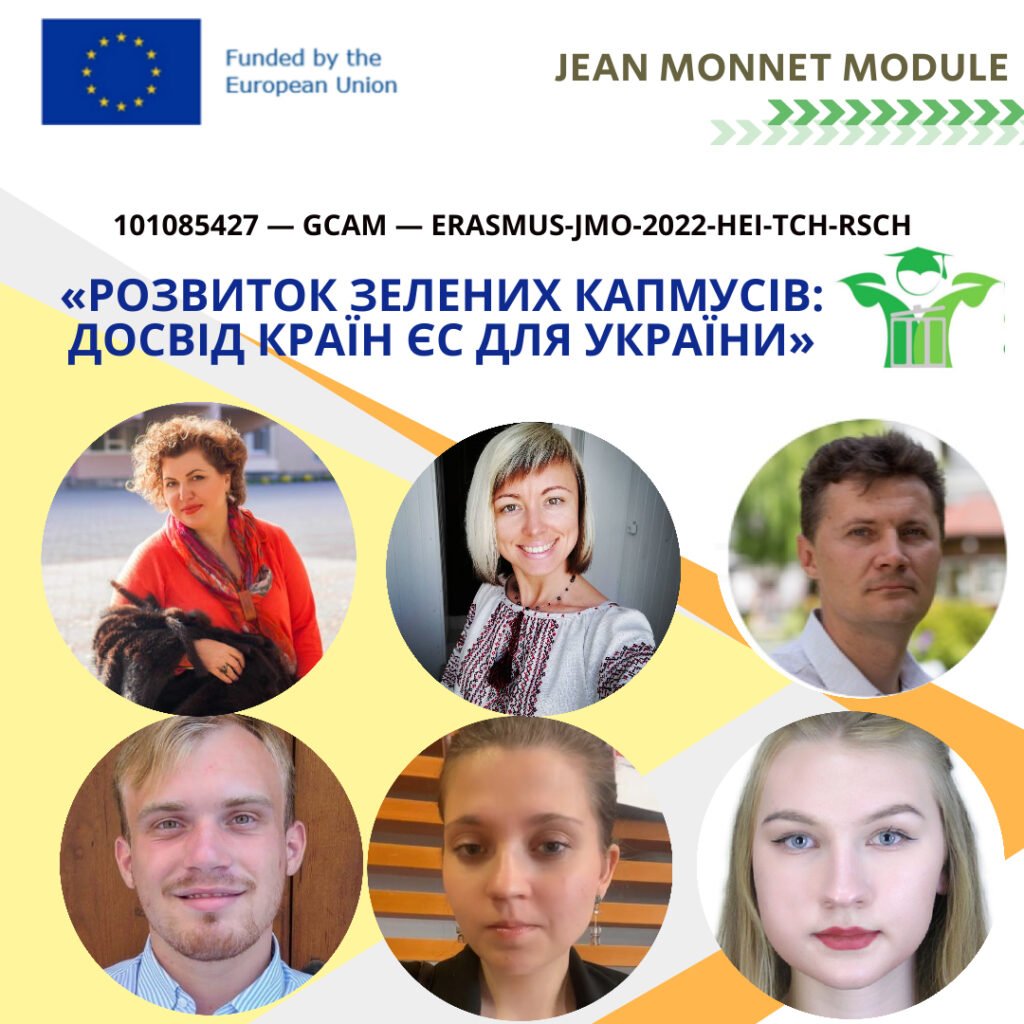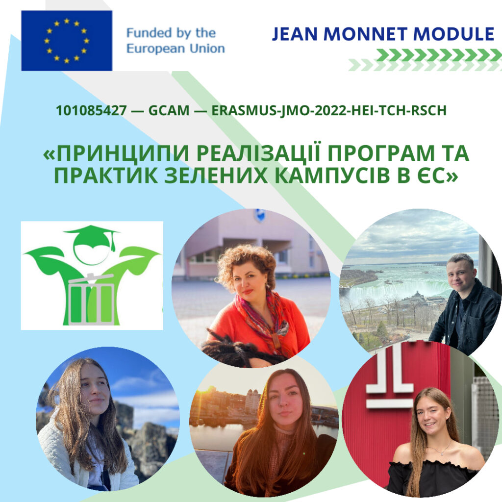 Реалізація проєкту Жана Моне «Green Campus Strategies: EU Experience for Ukrainian Universities» (2022-2025, 101085427 — GCAM — ERASMUS-JMO-2022-HEI-TCH-RSCH) направлена на ознайомлення студентів та аспірантів з кращими науковими і педагогічними практиками, студентськими ініціативами щодо забезпечення кліматичної нейтральності та екологічної відповідальності в університетській спільноті.