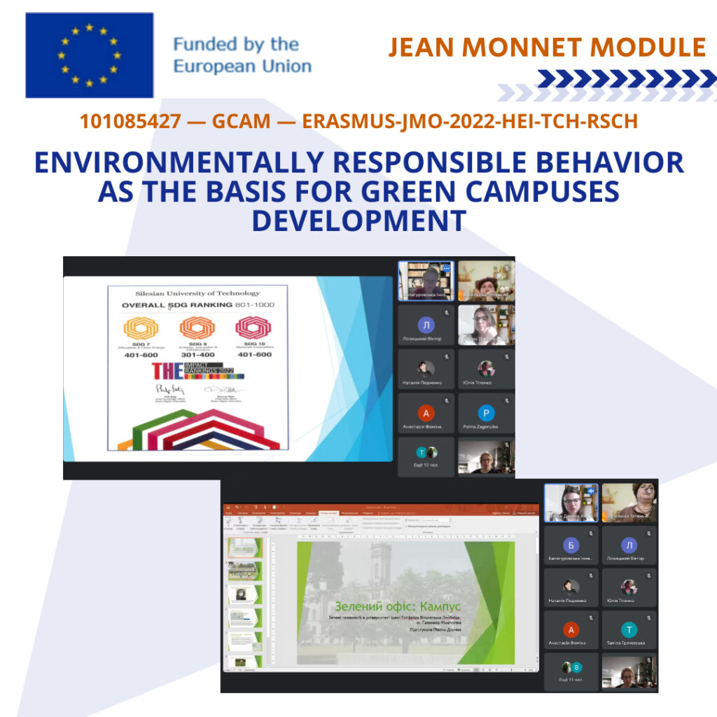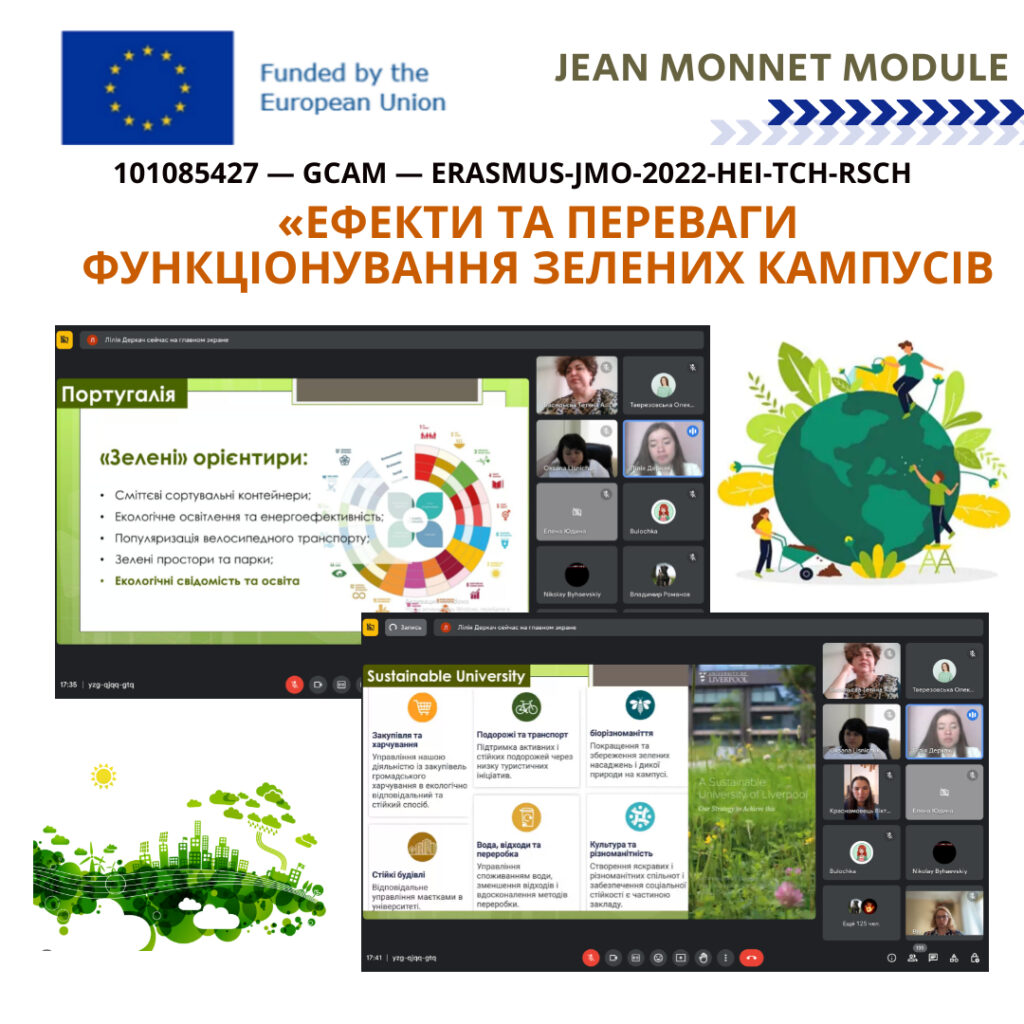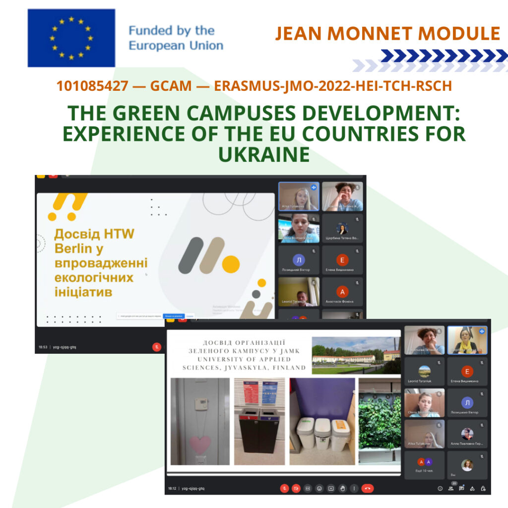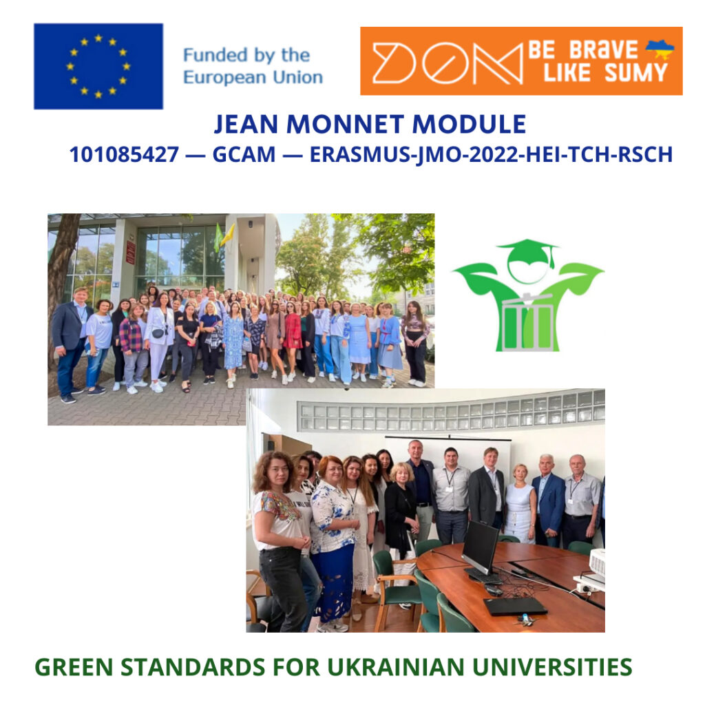 Реалізація проєкту Жана Моне «Green Campus Strategies: EU Experience for Ukrainian Universities» (2022-2025, 101085427 — GCAM — ERASMUS-JMO-2022-HEI-TCH-RSCH) направлена на ознайомлення студентів та аспірантів з кращими науковими і педагогічними практиками, студентськими ініціативами щодо забезпечення кліматичної нейтральності та екологічної відповідальності в університетській спільноті.