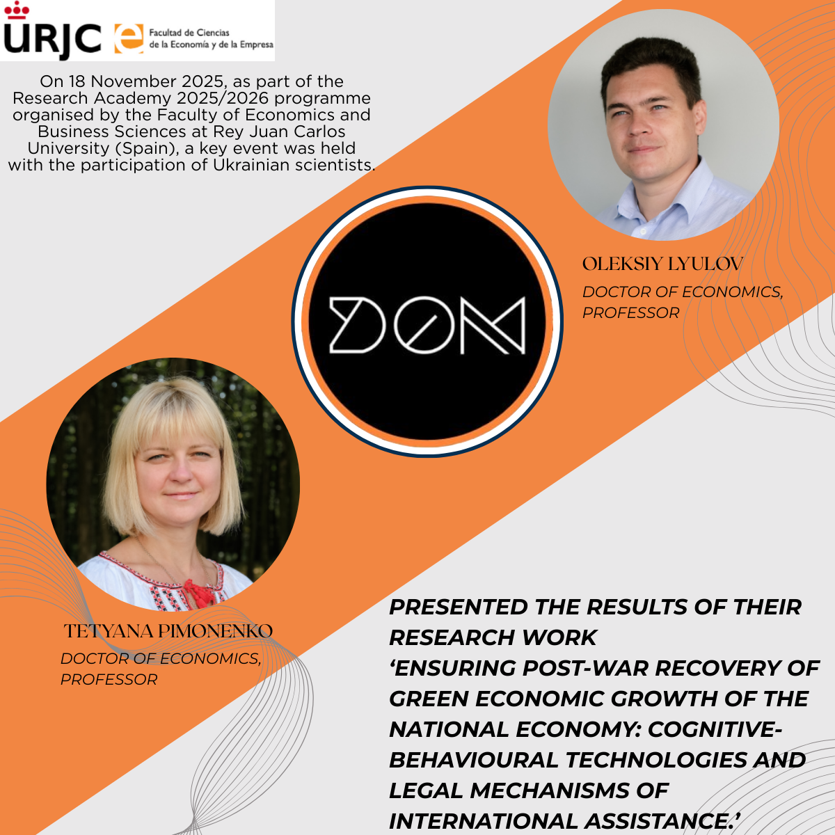 18 листопада 2025 року в рамках програми Research Academy 2025/2026, організованої Факультетом економічних та бізнес-наук Університету Рей Хуан Карлос (Іспанія), відбулася ключова подія за участю українських науковців.