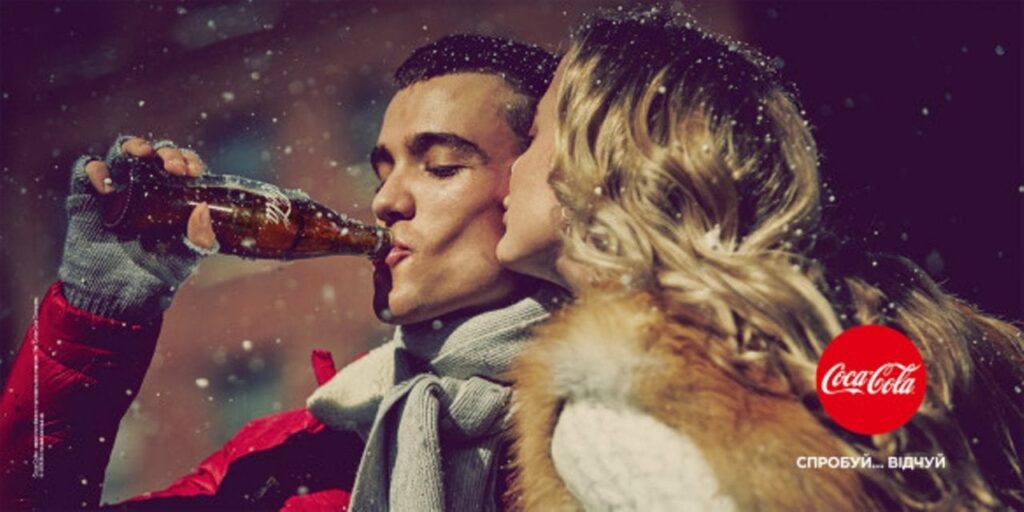 Червоний колір, звук відкриття пляшки, усміхнені обличчя – усі ці елементи викликають у нашому мозку асоціації з радістю і теплом. Сміливо можна сказати, що бренд таким чином продає не напій, а емоцію!