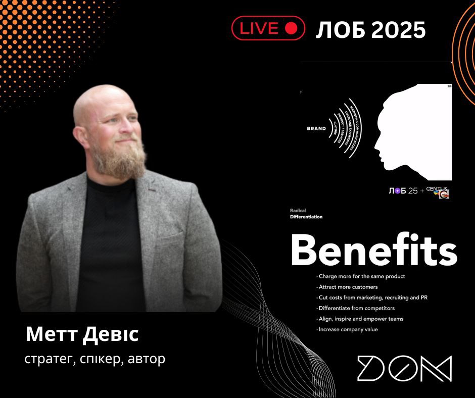 Метт Девіс поділився з учасниками своїм баченням того, що сила бренду починається з відваги — відваги бути собою, говорити чесно та мислити нестандартно. Він наголосив, що у сучасному інформаційному шумі саме щирість, унікальність і сміливість допомагають брендам здобути довіру споживачів і стати впізнаваними.