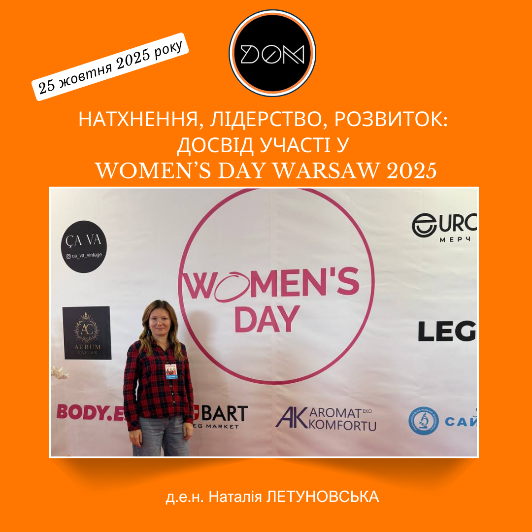 25 жовтня 2025 року викладачка кафедри маркетингу Наталія ЛЕТУНОВСЬКА відвідала у Варшаві масштабну конференцію WOMEN’S DAY WARSAW 2025, що проходила у виставковому центрі Expo XXI і зібрала понад 500 учасників.